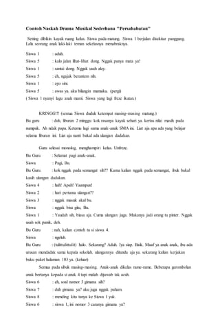 . 14 contoh teks naskah drama pendek lucu teater dan persahabatan. Contoh skrip teater si tanggang kembali. Anda di halaman 1 dari 3.